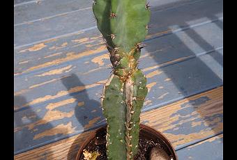 Donc, revenons a nos mouton.J'ai un cactus qui me joue des tours. À chaque année, il est envahie de cochenilles et comme à chaque printemps, je le met à l'extérieurs et je me dis toujours que je devrais pas et qu'il va mourir car la nuit il fait -5 par chez nous....(.mais faut pas oublier que les cactus dans le désert sont confrontés a des températures très bases). et bien non et le pire dans tout cela c'est la deuxième année qu'il fend sur le dessus et je me dit que c'est les cochenilles. ET NON! il grandit , il repousse! j'en crois pas mes yeux il préfère être dehors qu'à l'intérieur!!!! Donc si jamais vous avez un cactus de ce type vous saurez quoi faire ;)