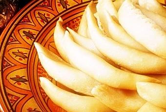 La corne doit etre à peine colorée, elle doit rester tres pâle, surtout sans brunir davantage.On doit surveiller bien la cuisson des cornes de gazelles .