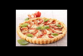 Hacher le basilic et parsemer sur la tarte, saupoudrer de thym et de romarin, ajouter un filet d'huile d'olive.