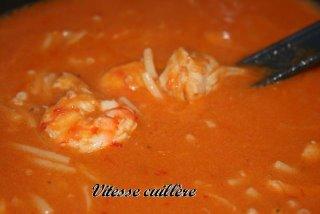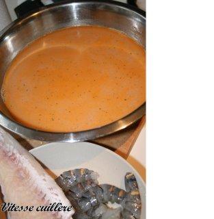 Préparation du fumet:Mettre l'huile ainsi que les carcasses et têtes de crevettes dans le bol du thermomix 4 min 100° vit 4.