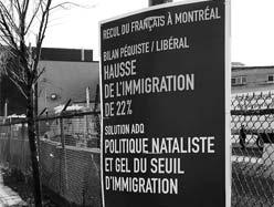 L’ADQ /Équipe Mario Dumont ne vise qu’une seule chose ( ou deux, ou trois, à vrai dire, ça dépend du vent) avec ce plan de panique quant à la survie du QUÉBÉCOIS. C’est d’abord, par opportunisme bien sûr, de tirer avantage d’une situation de crise autour du français, de surfer sur cette vague d’intolérance qu’ils se créent eux-mêmes par rapport à l’immigrant, qui paiera en passant la plus coûteuse des factures de cette intolérance injustifiée. Rappelons-nous les évènements d’Oka qui avaient gangréné en racisme primitif des plus patents, des plus honteux surtout! Je souhaite bonne chance aux immigrants qui grâce à notre girouette nationale opportuniste et égoïste, jouiront d’une popularité non méritée, non désirée, j’en suis certain.