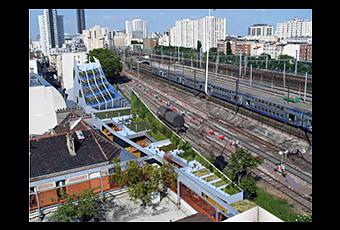 La partie basse du bâtiment offrirait un visuel verdoyant intéressant avec un mur végétal, un jardin partagé et un jardin public. De l’autre côté, celui donnant sur la voie ferrée, des panneaux photovoltaïques alimenteraient la structure en eau chaude et en électricité ».