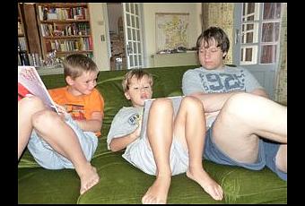 Il faut compter avec les courses dans la piscine où tantôt Romabe, tantôt Hugo l'emporte, les matchs de tennis avec Oncle Tim, la fabrication de gâteaux au chocolat avec Tante Victoire, et pour les mamies, le tricot !