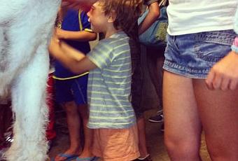Nous avons assisté à la traite, les enfants ont pu caresser et brosser l’ânesse. Et pompon sur la Garonne (comme dirait l’autre), nous avons pu goûter le lait d’ânesse. J’ai été très surprise de constater que le goût n’avait strictement RIEN à voir avec le lait de vache. La consistance est également complètement différente et le lait d’ânesse est dépourvu de matière grasse, ce qui fait que très peu de choses peuvent être confectionnées avec ce dernier (ni fromage, ni crème etc…).