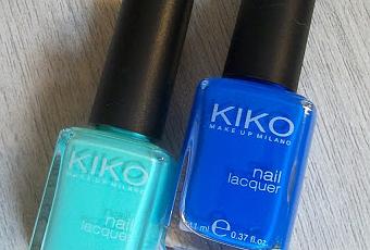 Aujourd'hui je reviens pour vous parler de deux vernis Kiko qui selon les dires des copines blogueuses (puisque je ne possède pas les originaux) seraient respectivement des dupes d'un vernis Yves Saint Laurent (le Bleu Majorelle) et d'un vernis Kure Bazaar (le Caicos).