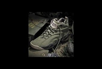 En 1985, Shaquille O’Neal vivait sur une base militaire en Allemagne avec sa famille car son beau-père était militaire. En référence à cette période, Reebok a conçu cette Reebok Shaqnosis « Barracks » qui arbore un upper vert olive contrasté par des touches de beige et de noir avec une doublure imprimé camo.