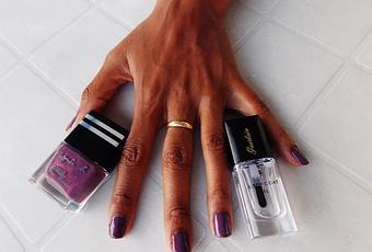 Il faut savoir qu’il est enrichi en polymère acrylique (brillance) et contient des résines qui lui donnent sa résistance au choc. Sur la photo, Christelle porte le vernis Agnes b et la top coat gel Guerlain.