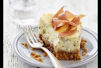 5° Démoulez et servez ce cheesecake avec de fines lamelles de jambon de pays.