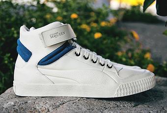 PUMA par Alexander McQueen a donné à la Climb Mid III un aspect neuf et propre cette saison avec ces couleurs blanc cassé et bleu.