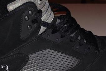 D’après la photo postée par djkhaled, on peut voir que la Air Jordan V Blackout dispose d’un upper en daim noir contrasté par des détails argentés et une languette 3M réfléchissant.