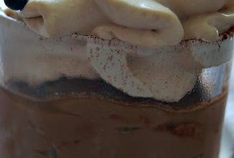 Au moment de servir, agiter fortement le siphon, dresser une rosace sur chaque verrine et décorer de perles craquantes ou copeaux de chocolat et se régaler!!
