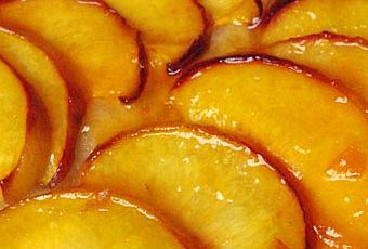 Laisser un peu refroidir la tarte à la pêche avant de la badigeonner généreusement avec la confiture d'abricots.