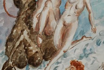 Il l'a tellement convoitée durant cet été, Alors sur Podagyre cheval des rêves enfiévrés, Le voilà au-dessus des flots emporté Dans une chevauchée du désir exaspéré, Pour enlever Cyllène de son royaume des eaux, La ravir et enfin assouvir sa terrible libido, Au grand effroi de ses soeurs les Limnades, Que menacent du cheval les brutales ruades, L'homme et la bête dans une même furie, Sont déchaînés dans la sauvagerie de leur folie, Fantasmagorie que plus rien ne contrôle, Dans cet ouragan la malheureuse s'envole, Sans retour promis, à jamais meurtrie, De ces intempéries irrévocablement flétrie. Et puis, quand tout est fini Et que s'installe l'oubli, Restent les anales de la météorologie Qui, d'un fait- divers font la mythologie.