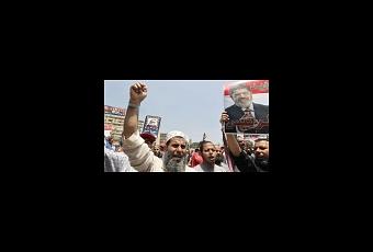 Photo : Manifestations de membres des Frères musulmans et de partisans de Mohamed Morsi, le 4 juillet 2013 au Caire (Egypte). (LOUAFI LARBI / REUTERS)