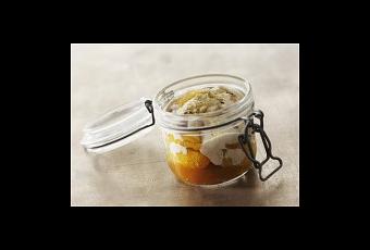 Dans des verrines répartir les abricots, ajouter du sirop au thé vert, et napper de crème, décorer de noisettes concassées