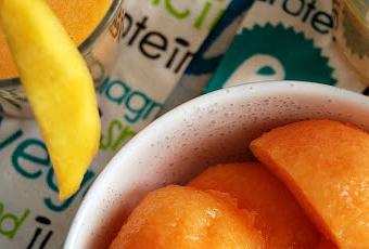 Ingrédients :un beau melon de la Drôme bien fraisdeux nectarines jaunes (de la Drôme aussi)10 cl de jus de pomme bio