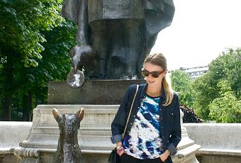 Au mois de juillet, mon chéri et moi avons pas mal écumé les parcs et jardins. Une ballade, une sieste, un verre... Cette fois me voici au jardin du Ranelagh près de la Muette à Paris. Un jardin ou se mêle Guignol, balançoires, poney et belle pelouse. J'ai choisi comme "spot" la statue mythique de Jean de la Fontaine représentant la fable "Le corbeau et le renard".