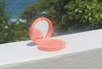 Tout d'abord, je salue le packaging qui bien sûr est mignon comme tout, mais surtout très pratique! Cette petite boîte en plastique plate, légère et compacte se glisse partout et est dotée d'une fermeture aimantée et d'un miroir intégré. C'est d'ailleurs le blush que j'ai choisi d'amener dans mon vanity de vacances pour les Seychelles - ici ! - et il a parfaitement tenu le choc! Mini-encombrement, maxi-effet : j'aime ;)