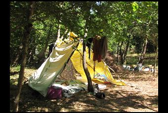 Tu désertes ta tente scandinave, aux moustiquaires zippées, pour dormir dans la cabane des enfants, faite en vieux draps et branchages