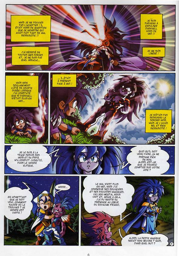 Il semble qu'Elysio, le mystérieux ami des cinq héros retombés en enfance, soit en fait... le grand sorcier Darkhell ! Ce dernier affirme toutefois avoir perdu la mémoire et refuse de s'identifier à ce monstre de cruauté. Les Zar-ikos - des hommes-plantes démoniaques - en ont décidé autrement et entendent bien lui rafraîchir la mémoire.