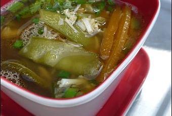 - A l'ébullition, ajouter carottes, pois, coriandre vietnamienne et ciboule de Chine
