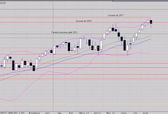 On remarquera que les indices américains (S&P500, Nasdaq) ainsi que le DAX d'ailleurs, eux aussi "soumis" à l'apparition de fenêtres baissières sur leurs graphes respectifs, ont réussi à contenir les corrections qui les attendaient.