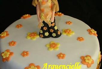 C'est une gâteau tout simple décoré avec de la pâte à sucre, je souhaitais quelque chose de coloré et surtout je voulais utiliser les restes de pâte à sucre orange avant qu'ils ne se périment, je n'aime pas jeter de la nourriture.