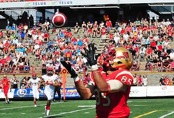 Si le jeu au sol a été efficace, on ne peut pas en dire autant de l’attaque aérienne. Rodage de début de saison? Sans doute! Malgré tout, Tristan n’a pas mal fait. Tout comme en 2012, il ne commet pas beaucoup d’erreur (pas d’interception). En fait, nous croyons que son modeste taux de passe complété d’hier n’est pas issu d’un manque de précision ou de mauvaises lectures. Nous regardons plutôt du côté des receveurs. Selon nous, outre quelques passes suicide, souvent Tristan faisait la bonne lecture mais le receveur de passe ne faisait pas bien la sienne. De plus, il est important de mentionner que Calgary a souvent joué une défensive « cover 2 » pendant le match. Il ne voulait visiblement pas se faire brûler par la voie aérienne!