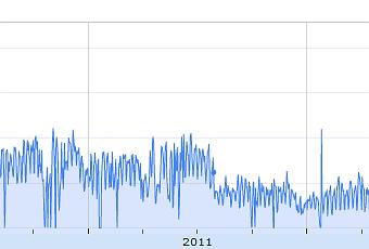 Mais la baisse de la mi-2011 (précisément le 29 juillet), où les articles ont diminué de moitié, a attiré mon attention ; ce fut un changement radical duquel ils ne se sont jamais remis.