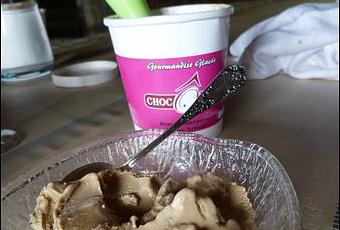 Ce que j'ai trouvé de vraiment délicieux cet été, ce sont ses glaces : nous avons goûté les saveurs praliné et chocolat au lait. En pot de 0,5l., au prix de 4€. Une expérience mémorable. Avec un filet d'Armagnac vieux, c'est à se damner ...