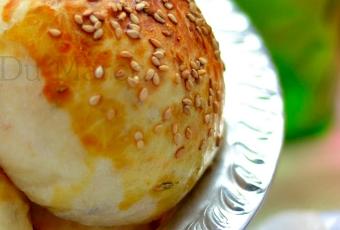 Une fois la pâte levée, dégazer. Confectionnez des petites boules et disposez, en les espaçant parce qu’elles gonflent à la cuisson, sur une plaque recouverte de papier de cuisson ou juste badigeonnez avec un peu d’huile. Laissez lever 45 min environ.