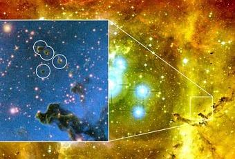 Nous pensons que ces petits nuages ronds se sont séparés des grands piliers de gaz et de poussières qui ont été sculptés par le rayonnement intense des jeunes étoiles. Ils ont pris de la vitesse à partir du centre de la nébuleuse, grâce à la pression du rayonnement des chaudes étoiles qui s’y trouvent.