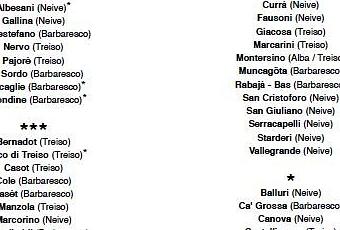 Ainsi, pour le Piémont, avec la surprise de ne pas voir le Cannubi Boschis dans les *****, et naturellement en fonction de goûts personnels, je préfère de loin suivre les crus d'un Roberto Voerzio, d'un Luciano Sandrone, d'un Bruno Rocca ou d'Azelia sans oublier les intouchables Monfortino, Mascarello ou Giacosa.