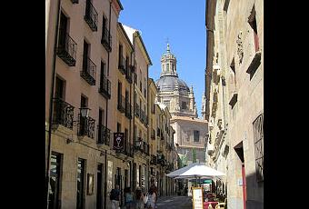 La vue de l'église des jésuites, de la Rua Mayor (rue principale, en diagonale, au centre) et d'une partie de la Plaza Anaya, la plus agréable place de Salamanca pour lire, relaxer avec une cerveza ou simplement regarder les gens s'émerveiller des beautés de la ville.