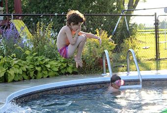 En chauffant la piscine, en sortant les grosses robes de chambre et en renouvelant mon inventaire de chocolat chaud! Oui! Oui! Chez nous, c'est le moment de l'année où l'on se baigne le plus, presqu'à tous les jours.