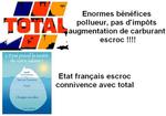 Alors si, en plus, Total ne paie pas d'impôts... Espérons sincèrement que tout le monde se trompe. Il suffirait pour en avoir le coeur net que l'Etat et Total décident de publier les chiffres. Transparence...(source les mots ont un sens)