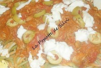 Sur sont blog Lulu nous la propose avec une semoule de couscous, on peu aussi servir avec des pâtes comme moi ou du riz..