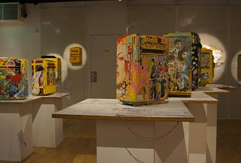 Petites, grandes, sur pied, La Poste a extrait de ses réserves ces boîtes si convoitées. Envoyée à l’artiste qui l’a peinte dans son atelier et ensuite renvoyée au Musée, la boîte s’expose, éclairée comme un tableau, dans un endroit épuré, zen, avec en guise de feuille de route un message de l’artiste sur une enveloppe artistiquement timbrée.