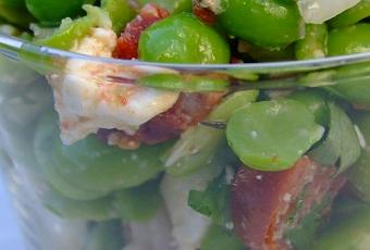 SALADE de FÈVES, TOMATES CONFITES et CHORIZO