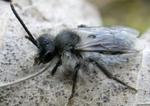 blanche peut être observée dès le mois de mars. Comme toutes les Andrena, elle niche isolément, au sol, dans un petit terrier creusé dans une bande de terre dénudée. Elle se