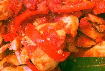 Émincez vos oignons et vos pulpes, vos poivrons en lanières et l'ail.