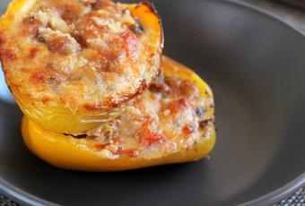 Battez les deux œufs dans un saladier. Ajoutez les tomates, la mozzarella, la tapenade d’olives et les champignons. Salez et poivrez. Répartissez cette farce dans les demi poivrons. Saupoudrez de parmesan.