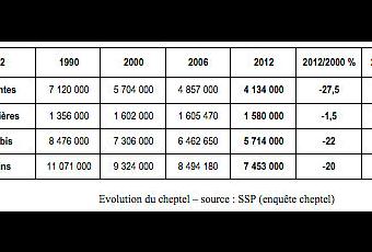 Chaque année, le Service de la Statistique et de la Prospective (SSP) effectue une enquête cheptel destinée à déterminer les évolutions d’effectif concernant les différentes filières d’élevage. Cette étude représente l’ossature de la publication annuelle de l’Institut de l’Elevage intitulée : "Chiffres clés 2013, productions ovines lait et viande", dont la dernière mouture, portant sur l’année 2012, a été mise en ligne en août. Cette publication existe également pour d’autres filières d’élevage.