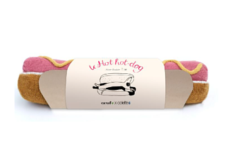 Ce hot dog est disponible là maintenant, tricoté main, tu te doutes qu'il est en édition limitée, il vient compléter la jolie collection.