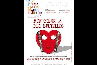 Comédie de Guillaume BeaujolaisMise en scène de Séverine Bozkurt assistée de Guillaume BeaujolaisAvec : Laura Bensimon, Séverine Bozkurt, Thomas Ronzeau, Alexandre Dalozzi"Marie est une jeune femme fraîche, pleine de vie et de bonne volonté. Avec Mathieu elle vit son véritable conte de fée. Mais le soir de leur anniversaire, elle commet l'erreur de trop! Elle offre à son homme...des bretelles !"Parce que l'amour et le couple sont des thèmes universels aux quels personne ne comprend rien, mieux vaut en rire ! C'est précisément ce que nous propose la joyeuse troupe de "Mon cœur a des bretelles !"Il était une fois, la douce et jolie Marie, fille à papa un peu rétro et de Mathieu, un jeune cadre dynamique très pris par ses affaires, joueur et impétueux. Peu de choses semblent les réunir et pourtant, ils s'aiment ! Enfin, ils font ce qu'ils peuvent pour s'aimer. Le jour où Marie commet l'impair d'offrir une paire de bretelles à son amoureux, elle comprend qu'il est tant de réagir pour ne pas le perdre. Pour l'aider, deux complices assez atypiques ! Le bel Alex, son meilleur ami gay et implacable sur le training de relooking à suivre, et l'étrange et charismatique Natasha, aux méthodes plus rigides et intransigeantes encore.La douce et jolie Marie parviendra-t-elle à reconquérir son amoureux ? Pour le savoir, rendez-vous aux Théâtre des Blancs-Manteaux. Rire aux éclats garanti, avec cette comédie pleine de surprises, portée par des comédiens au talent enthousiaste et à la bonne humeur communicative ! A voir en couple, ou pas !Du jeudi au samedi à 21h(Relâche les 22, 23 et 24 Août)Au Théâtre des Blancs-Manteaux15 rue des Blancs-Manteaux75004 ParisM° Hôtel-de-VilleRéservation indispensableun seul numéro : 01 48 87 15 84Accueil téléphonique de 14H A 22H tous les jours.Billetterie sur place à partir de 18H30 tous les jours, à partir de 16H30 le dimanche.Plus d'infos et de spectacles sur le site du Théâtre des Blancs-ManteauxTéri Trisolini