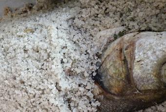 Déposer le poisson et le recouvrir intégralement avec le reste du sel.