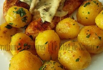 J'ai accompagné mes aiguillettes de poulet d'une sauce aux champignons et Feta ainsi que de pommes de terre sautées au