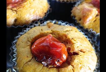Muffins aux tomates cerises et basilic & Muffins aux tomates cerise, abricots secs et raisins secs