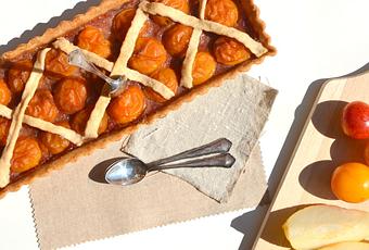 Qu'ai-je fait de toutes ces mirabelles ? Des sachets que j'ai congelés pour l'hiver, et puis des compotes pour mon p'tit homme, un clafoutis et cette jolie tarte.