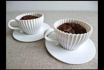 Répartir la pâte dans les moules silicone tasses très originaux de mon partenaire "La Chaise Longue".